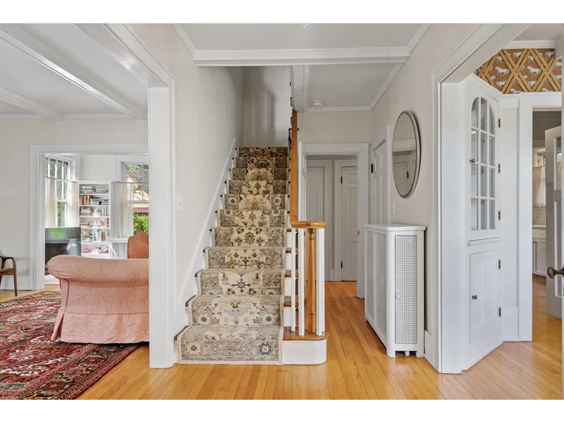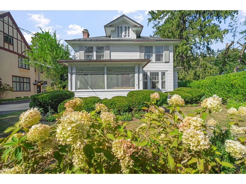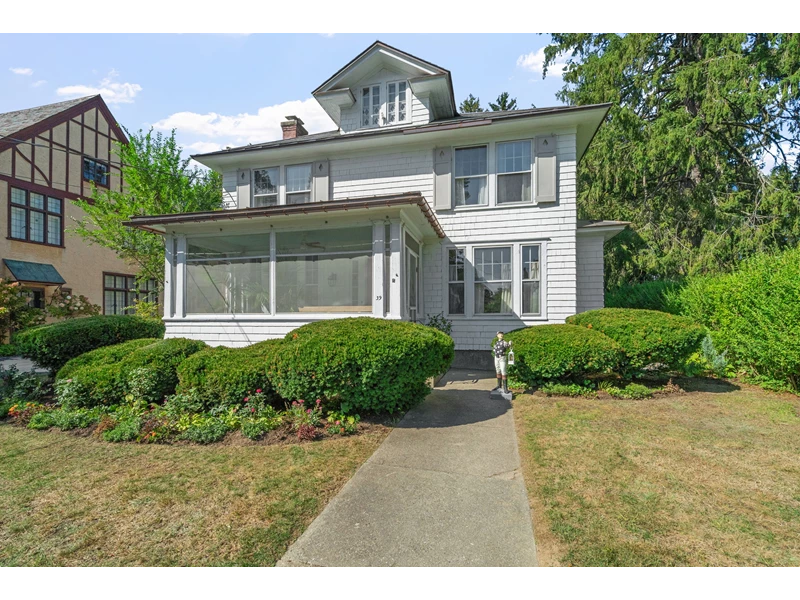 his exceptional home is located in the heart of Saratoga Springs. Fifth Ave is notably the best street within steps to the Historic Saratoga Race Course, Fasig Tipton and the famed Oklahoma Training Track. Enjoy this beautiful property on almost 1/4 acre with gorgeous landscaping. From its inviting front porch to its rich architectural details, every part of this property is filled with the rich history of Saratoga Springs. Upstairs you will find 4 bedrooms, 2 full baths and a 2nd floor laundry area, the primary en-suite fits a California King sized bed with new Italian marble vanity and polished nickel fixtures. Original hardwood floors, brass and glass doorknobs same as in the Lincoln Baths of Saratoga Springs. The finished attic space can be an office, studio or playroom. Unlike new construction or condominiums, this Historic Saratoga Springs home offers irreplaceable charm and character! This home has an abundance of natural light, original fireplace in the center of the living room, and a formal dining room perfect for gatherings. The kitchen offers a mix of vintage charm and contemporary convenience, ready to accommodate both everyday meals and weekend entertaining with the original swing door offering privacy while you cook! The attention to detail is evident in features like Italian marble in the kitchen and custom built-in cabinetry, creating a home that is both functional and aesthetically pleasing. Detached garage with electric and water, newly installed slate roof, copper awnings and so much more! Come for a visit to 39 Fifth Ave to see how this home showcases it's original craftsmanship, timeless architectural details, and a warmth that simply cannot be replicated.