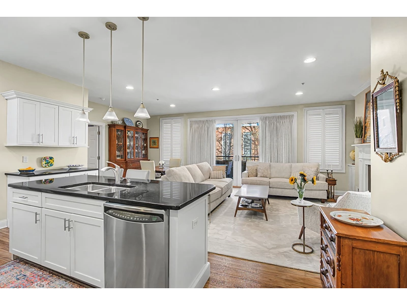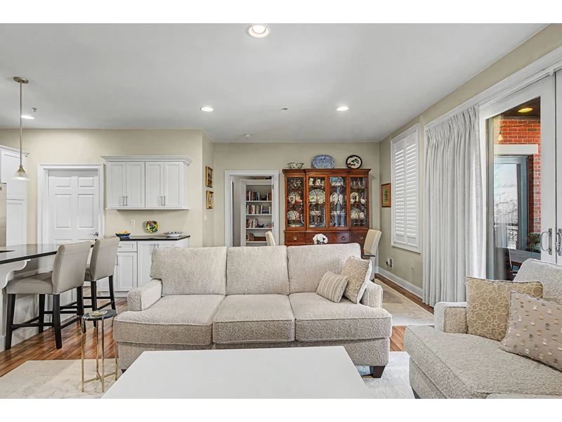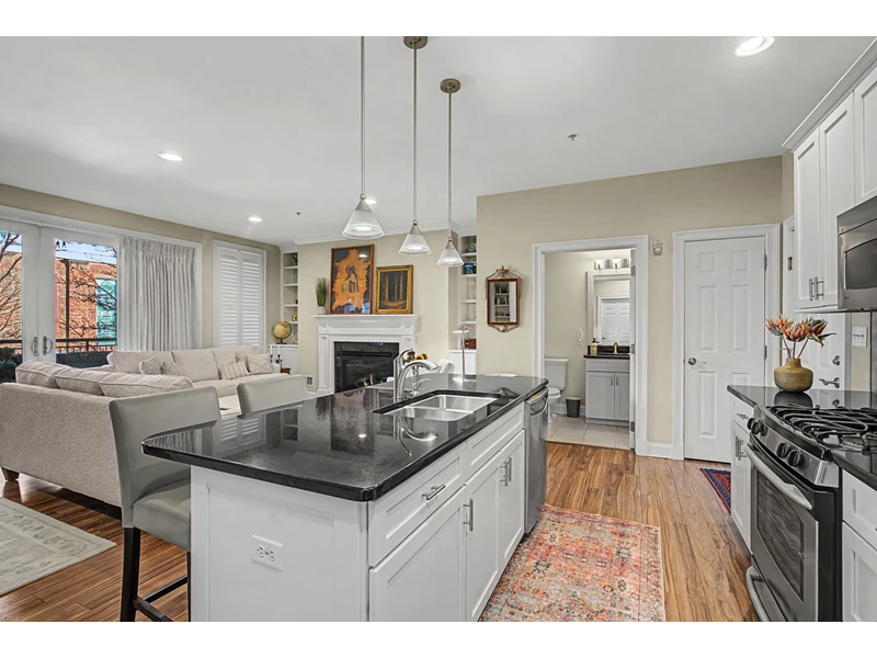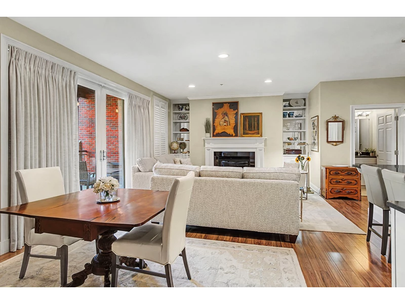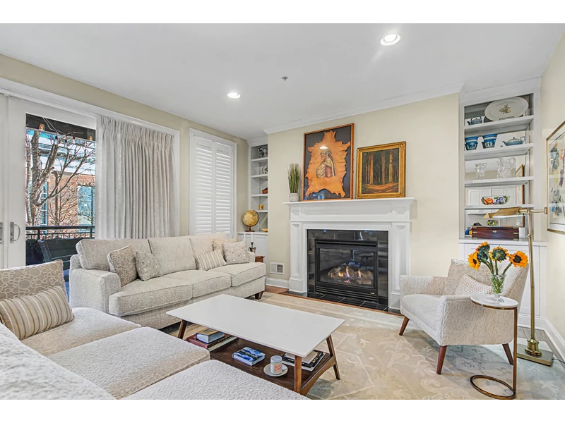 LUXURY DOWNTOWN SARATOGA SPRINGS CONDO Perfectly positioned for Saratoga's most vibrant season, this sophisticated 1-bedroom, 1.5-bath condo offers a sun-filled, open-concept layout designed for effortless summer living. Expansive sliding glass doors open to a 24' x 11' covered, private furnished terrace with planters and views of surrounding architecture and lush seasonal foliage, an ideal extension of the living space during racing season and summer performances at Saratoga Performing Arts Center. The fully outfitted kitchen features new appliances, granite countertops, and a spacious island with seating. The living area is enhanced by a gas fireplace with custom built-in cabinetry and shelving, a dedicated dining space, and direct access to the terrace for dining and relaxation. Located in a secure elevator building with controlled access, the residence includes an assigned covered carport space. Drive directly into the carport and step out into the heart of downtown Saratoga. Just one block off Broadway, this prime location offers effortless walkability to restaurants, shops, Congress Park, and the Saratoga Race Course, with easy access to Saratoga Spa State Park, Victoria Pool, Saratoga Golf Course, and SPAC.
