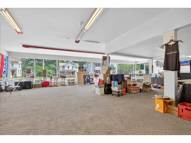 This 10,000+ sq. ft. building is currently used as a retail furniture store, offices, and apartments. It features a private 25+ space paved parking lot, updated electric and heating systems, air conditioning, overhead doors, and much more. This property can be used for any number of uses: retail, manufacturing, restaurant, tavern, banquet hall, apartments, condos, professional offices, or municipal offices, to name a few. (Consists of 2 parcels.) 24-hour notice.
