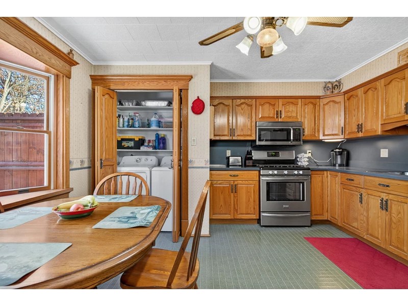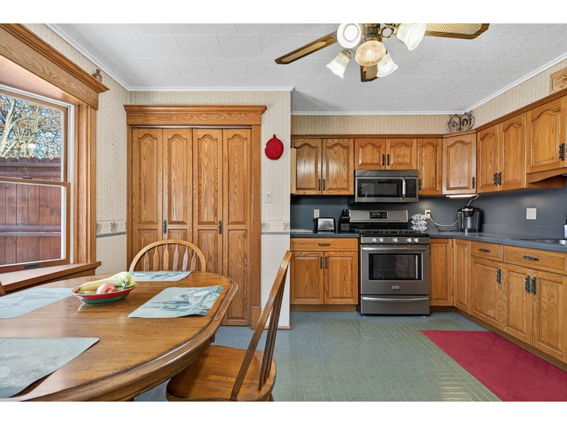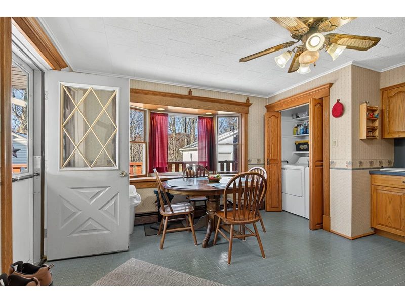 Welcome to this charming and versatile 2-family home—perfect for owner-occupied living, multi generational needs, or investment. The spacious first-floor unit offers 2 bedrooms, tall ceilings, and a generous eat-in kitchen featuring a lovely bow window to enjoy the scenic view. Upstairs, the darling 1-bedroom unit includes an updated kitchen with a vintage sink and cozy character throughout. Set on a large lot with a 2-car garage and plenty of off-street parking, this property provides exceptional outdoor living. Relax and take in the stunning sunsets from the expansive wraparound deck, complete with two umbrella holders for shaded entertaining. Additional perks include a walk-up attic for abundant storage. A truly special opportunity with endless possibilities!