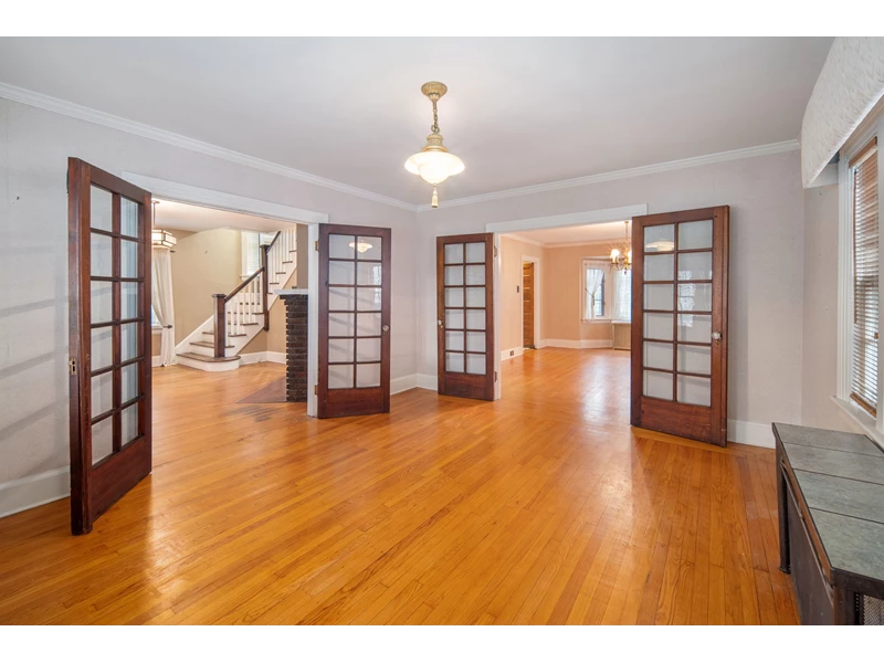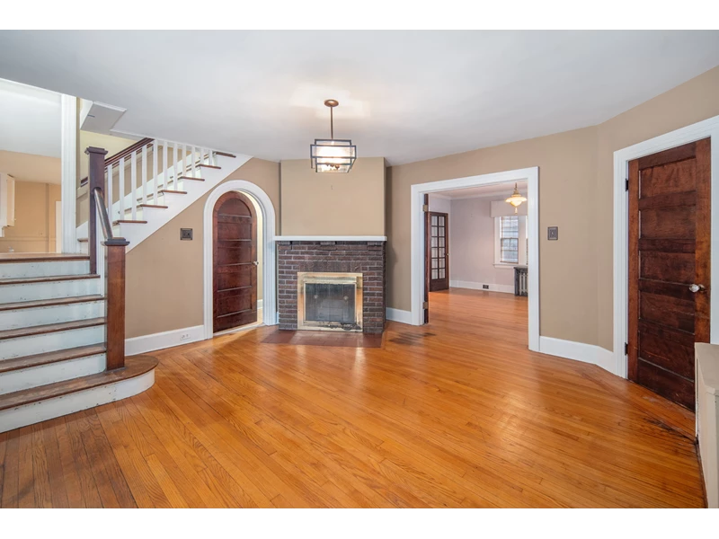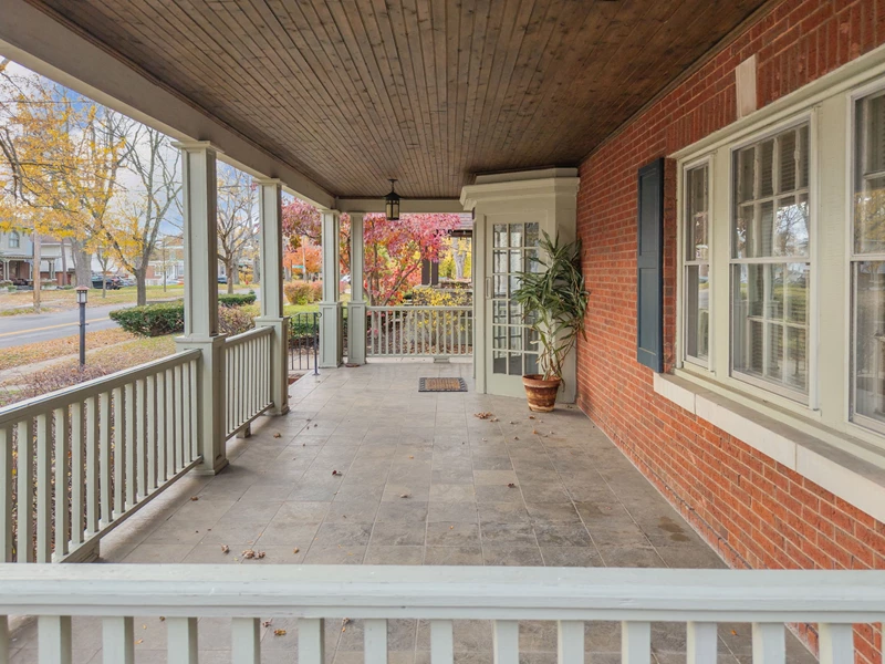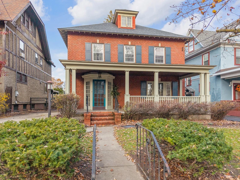 Welcome to this spacious, brick home, offering timeless charm throughout. Step onto the large front porch that leads you to the gracious entryway featuring a stunning fireplace and rich hardwood floors. Classic architectural details include crown molding, stained glass windows, French doors, and a unique split staircase connecting the entryway to the bright, updated kitchen that includes lots of cabinets and beautiful tile flooring. This generous home offers 4 bedrooms with built-in closets, giving each room character and functionality. The full walk-up attic includes a finished bonus area, ideal for a den, studio or workshop. An exceptional extra is the detached carriage house, perfect for guests, a creative space, or a home office. It features a half bath, jacuzzi, and fireplace and is truly its own inviting retreat. With some newer windows and fresh paint, this home blends old-world craftsmanship with thoughtful updates. Come see all that this large, beautiful home, full of endless possibilities, offers.
