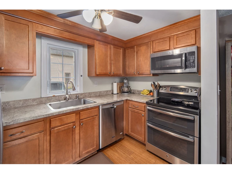Welcome to this remodeled 2-bedroom, 1.5-bath home set in the award-winning Voorheesville school district! This charming home features many updates throughout, including an updated kitchen with stainless appliances and LVP floors. The finished walk-up attic area could easily be used as a third bedroom, office, or playroom. Enjoy the finished basement with a built-in bar for entertaining friends. There is a deck off the kitchen for grilling and eating outdoors, and an enclosed front porch for relaxing that provides a warm entrance in the winter months. Washer & dryer included, new hot water heater, town water. Enjoy overlooking a peaceful stream in your backyard throughout the year. Just minutes to all the area shopping malls and grocery stores.